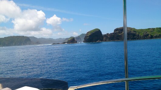 2014年7月6日 爽やかな南風はさほど影響していませんが、台風のうねりで磯場は白くなっています。 明日にはもっとうねりが上がる見込み(>_ 父島周辺の海の色も少しずつ良くなってきました(^-^…