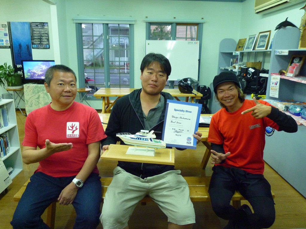 先日、OW認定を受けたナカムラショウゴさんが、本日ボートダイバースペシャルティ認定になりました!! 初のボートダイブ、寒さにめげずにとても楽しんでくれました^^ ナカムラショウゴさんボートSP認定おめ…