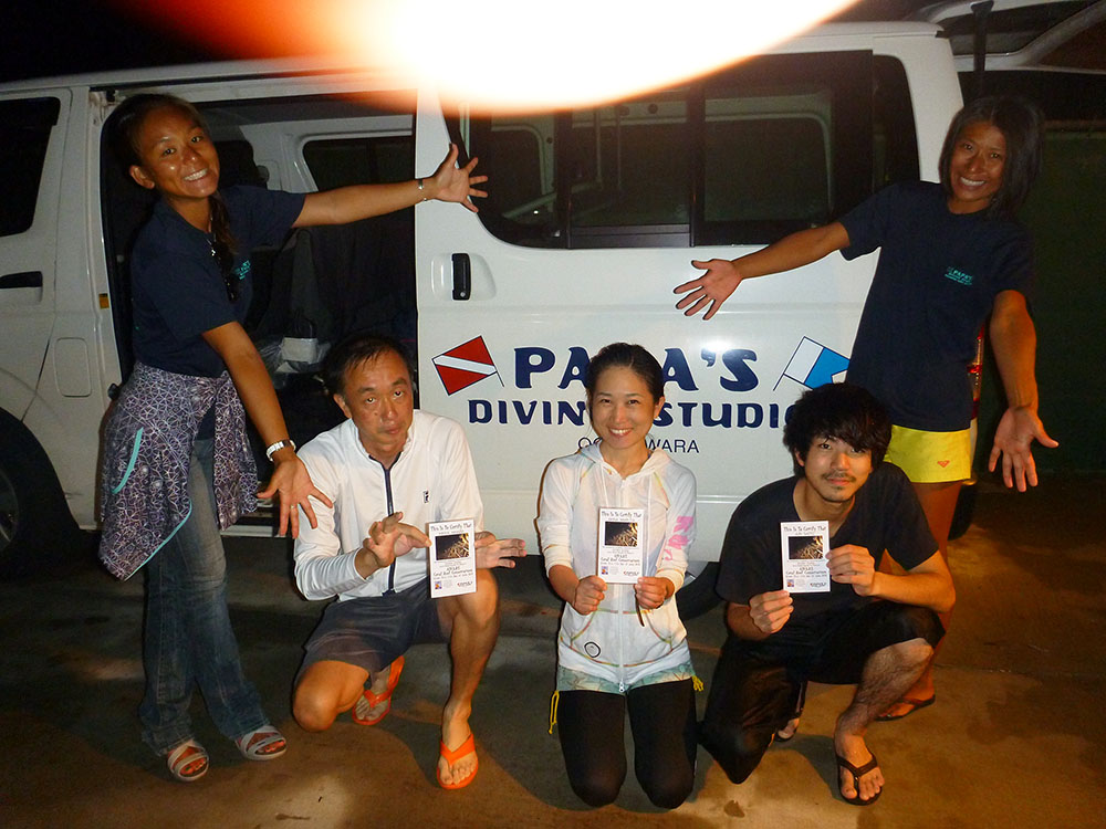 今夜もサンゴの産卵を見てきました!! 海況も少し悪くなり、産まれるかどうかも分からなかったけれど、 果敢に攻めたこの3名様!! 見事、サンゴ爆発しましたー!!! ヒガシデ ショウイチさん ウミノ トモ…