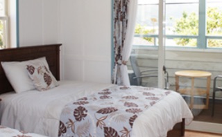The room has a three-quarter bed with Hawaiian pillowcase and bedspread. From a spacious terrace, you can have a view of Ogasawara’s mountains and sea. These are necessary for a relaxing life in Ogasawara.